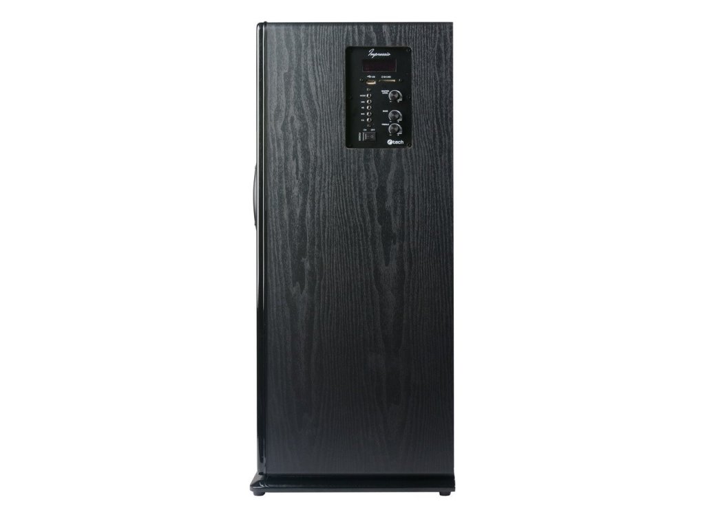 Sada dřevěných sloupových reproduktorů s integrovaným zesilovačem, MP3 přehrávačem a Bluetooth, aktivní, 3-pásmová konstrukce, 1x LINE-IN, 1x COAX, 1x OPTI, USB, SD, FM rádio