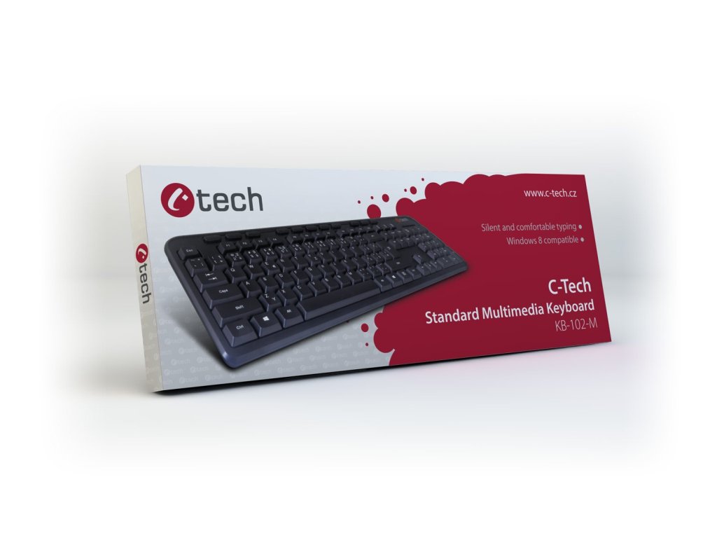Kvalitní moderní klavesnice C-TECH ve slim provedení. I zde je přítomna technologie pro minimální namáhání kloubů se středním zdvihem tlačítek. Model KB-102 je určen pro standardní použití doma i v kanceláři. Všechny modely klávesnic C-TECH mají kompletní český a slovenský layout.