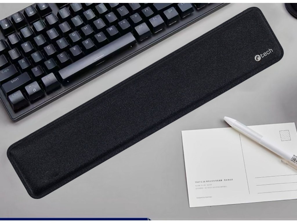 C-TECH KPG-01 je ergonomická podpěra zápěstí určená ke klávesnici, která zvyšuje pohodlí při dlouhodobé práci na počítači i při hraní her. Díky kvalitní paměťové pěně se dokonale přizpůsobí tvaru zápěstí a ulevuje tak od napětí a únavy. Povrch je opatřen protiskluzovou úpravou, která zajišťuje stabilní polohu na pracovní ploše, zatímco pevné obšití zvyšuje odolnost a prodlužuje životnost výrobku. S rozměry 450 × 93 × 25 mm je KPG-01 ideální volbou pro většinu standardních klávesnic.
