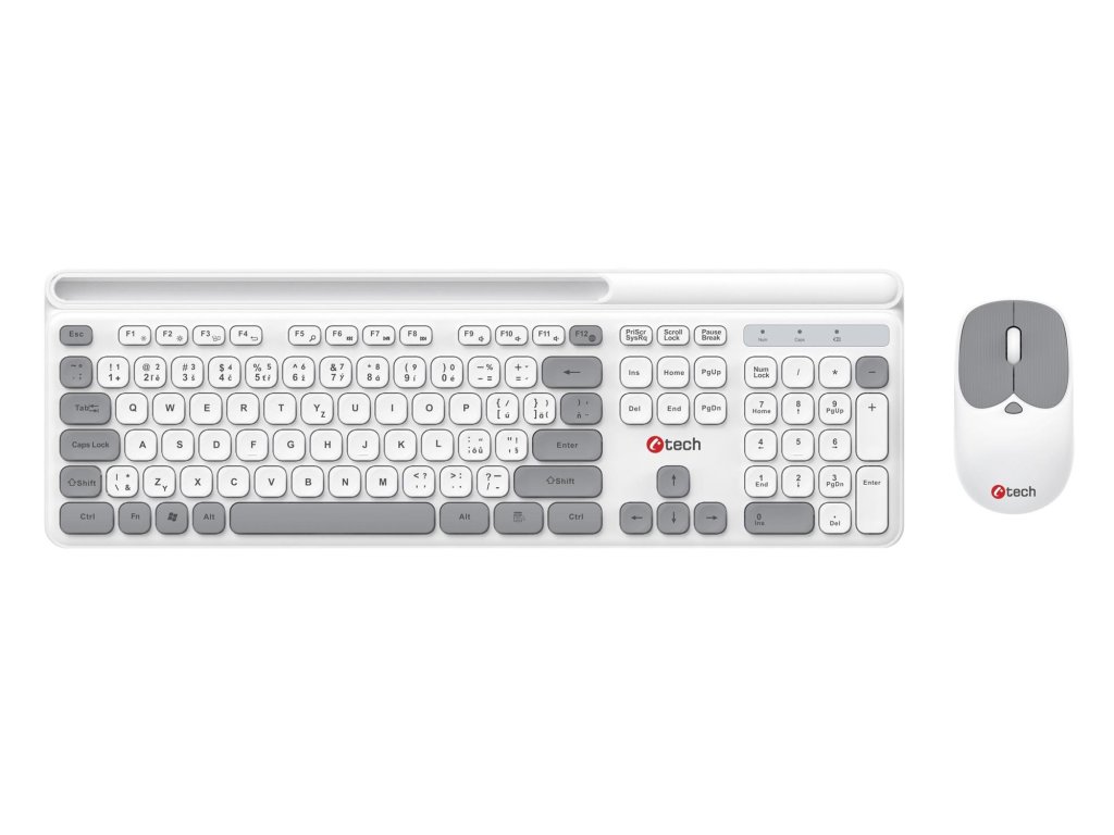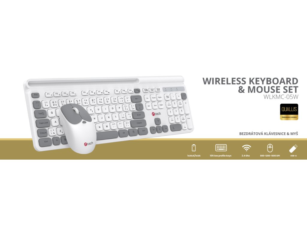 C-TECH Quallis WLKMC-05, bezdrátový combo set s myší, bílá, USB, CZ/SK