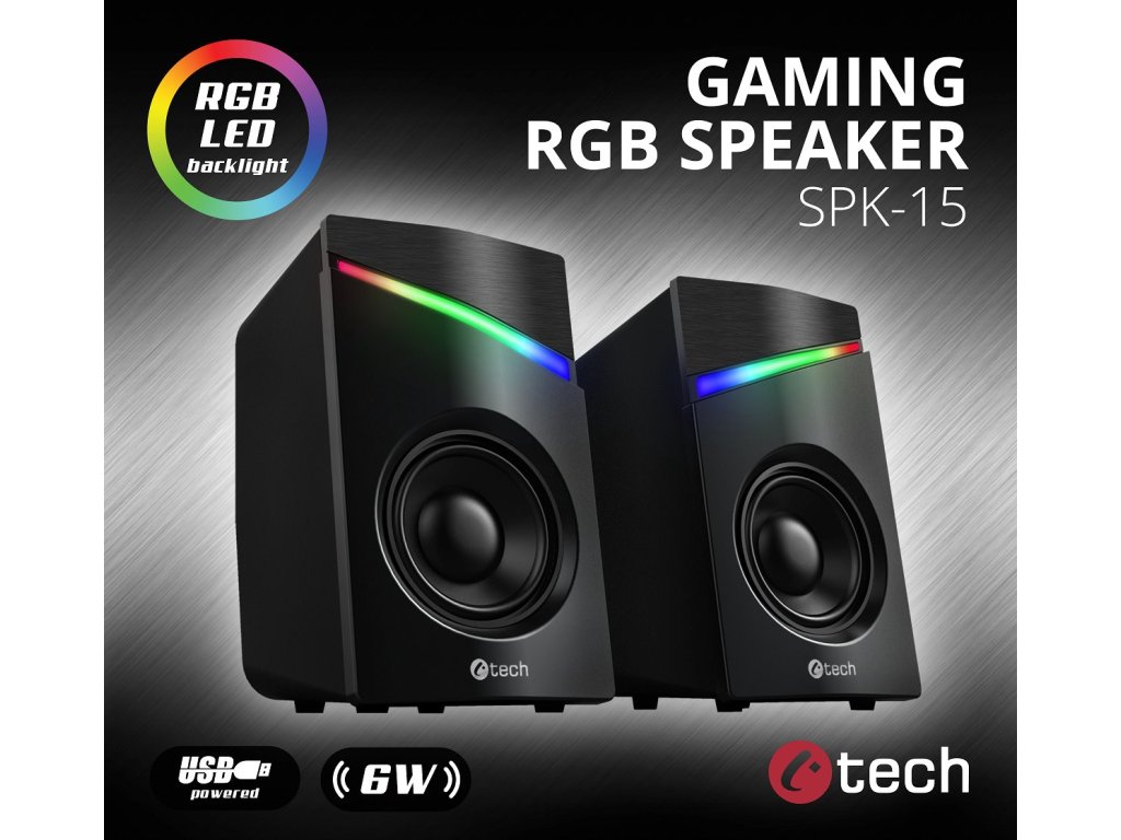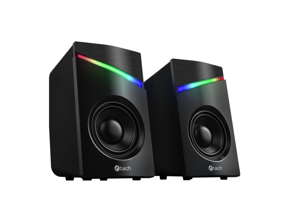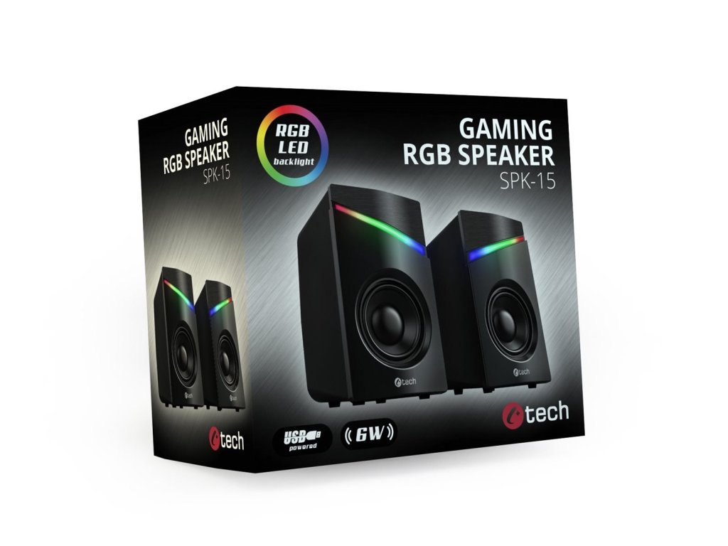 Kompaktní PC reproduktory C-tech SPK-15 2.0 vám zprostředkují kvalitní zvuk s výkonem 6W a frekvenčním rozsahem 150-20kHz. O jedinečnou atmosféru při poslechu hudby se postará automatické RGB podsvícení. K ovládání hlasitosti poslouží praktický ovladač, který je umístěn přímo na propojovacím kabelu. K tomuto ovládacímu prvku tak máte vždy bezproblémový přístup, takže můžete zvuk kdykoliv ztlumit či zesílit opravdu komfortně. Připojení soustavy k zařízením zajistí kabel s 3,5mm jackem, napájení zase USB kabel.