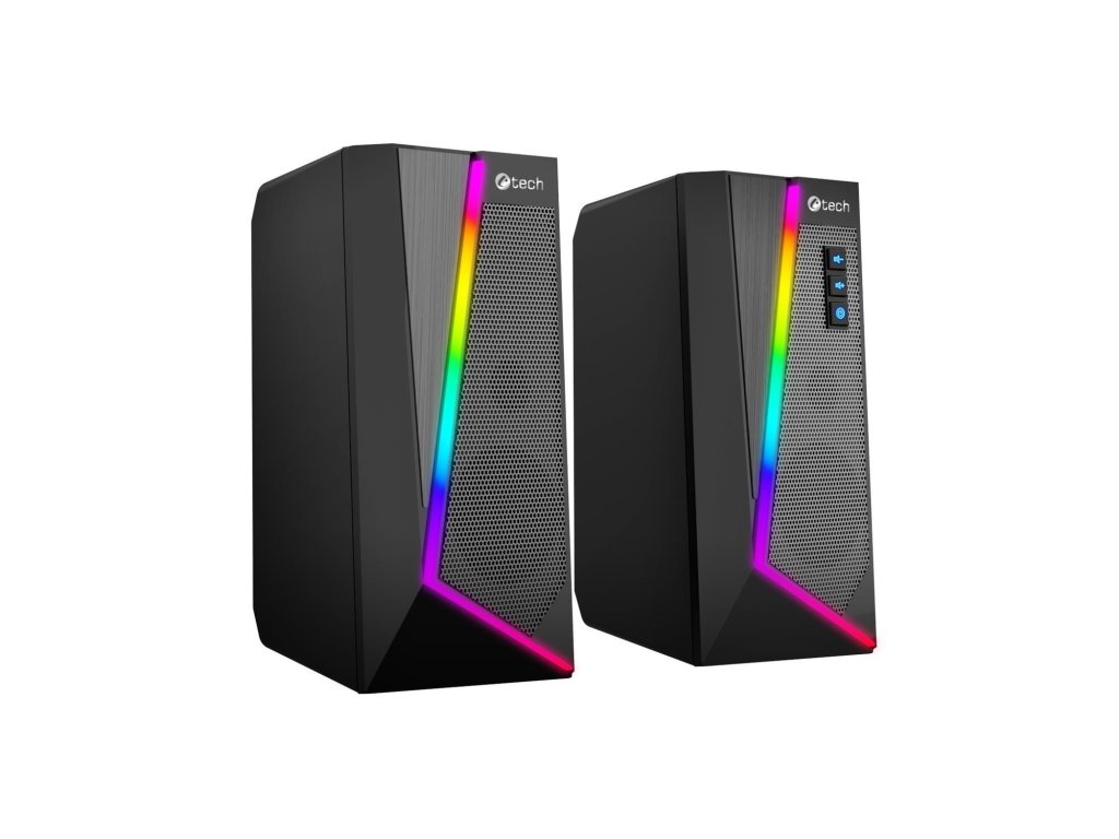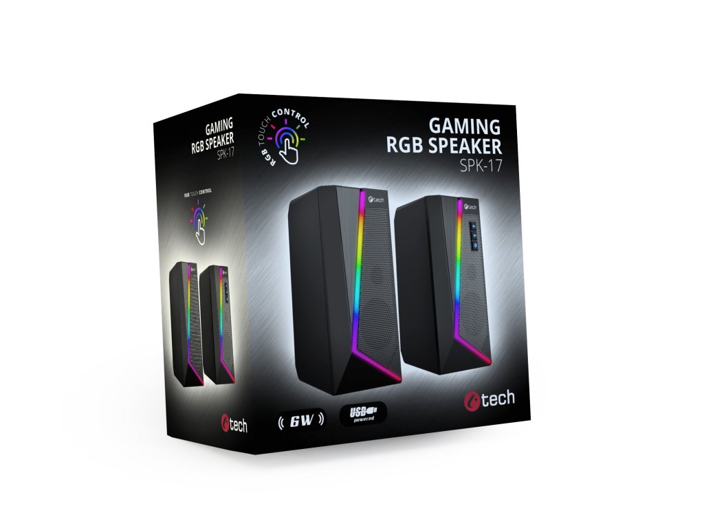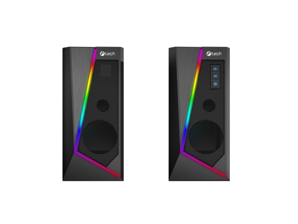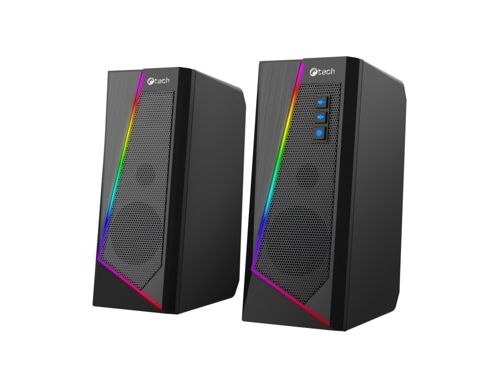 Stolní PC reproduktory C-tech SPK-17 s elegantním designem a decentním RGB osvětlením se stanou stylovým doplňkem každého pracovního stolu. Díky 40mm měničům s širokým frekvenčním rozsahem dopřejí vašim uším velmi kvalitní reprodukci. RGB osvětlení disponuje 6 různými světelnými režimy, které vám zaručí originální vizuální zážitky. Volba režimu je velmi jednoduchá a to dotykem na horní ploše řídícího reproduktoru. Reproduktory připojíte k počítači pomocí 3,5mm audio kabelu a nemusíte si dělat starosti ani s přídavným napájením, protože reproduktory C-tech SPK-17 jsou napájené přímo z USB vašeho počítače a tak se Vám automaticky spustí či vypnou společně s počítačem či notebookem. K ovládání hlasitosti poslouží tlačítka nacházející se na jednom z reproduktorů. Společně s ovládáním hlasitosti, je možno stiskem dalšího tlačítka vypnout RGB podsvětlení reproduktoru.