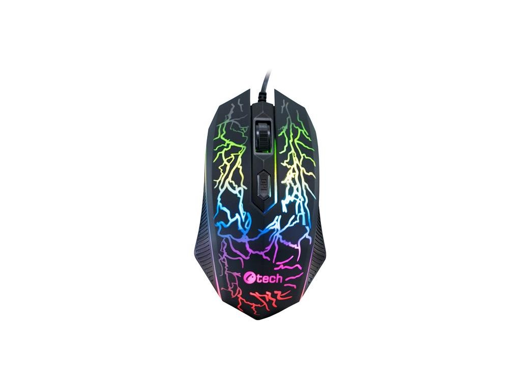 myš optická, herní design, konektor USB, až 3200DPI, 4 tlačítka, 1.8m, 7 barev podsvícení