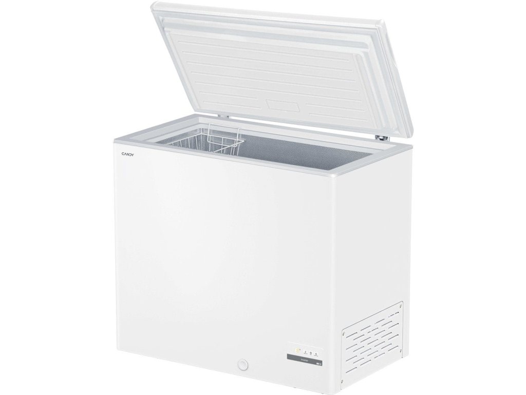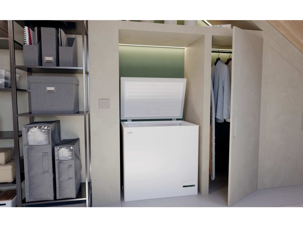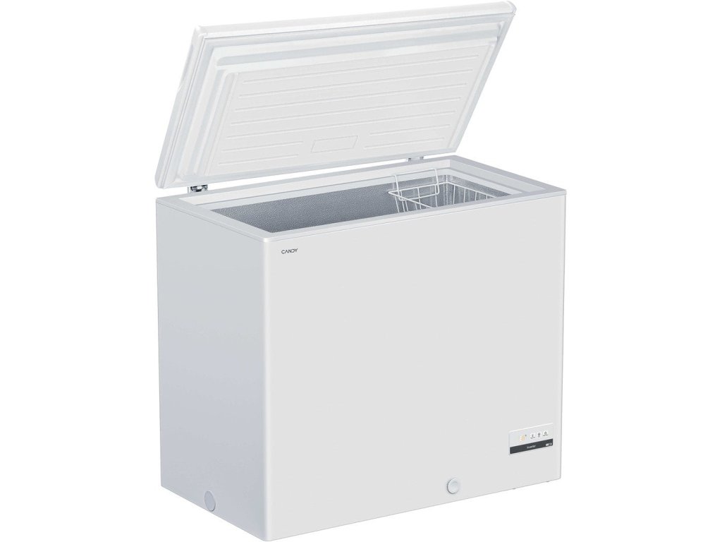 Truhlicová mrazák, energetická třída C, objem 196 litrů, invertorový kompresor, digitální displej, elektronické ovládání, funkce Rychlé mrazení, rozpětí nastavení teplot -12 až -26 °C, výška 84,5 cm, šířka 91,5 cm.