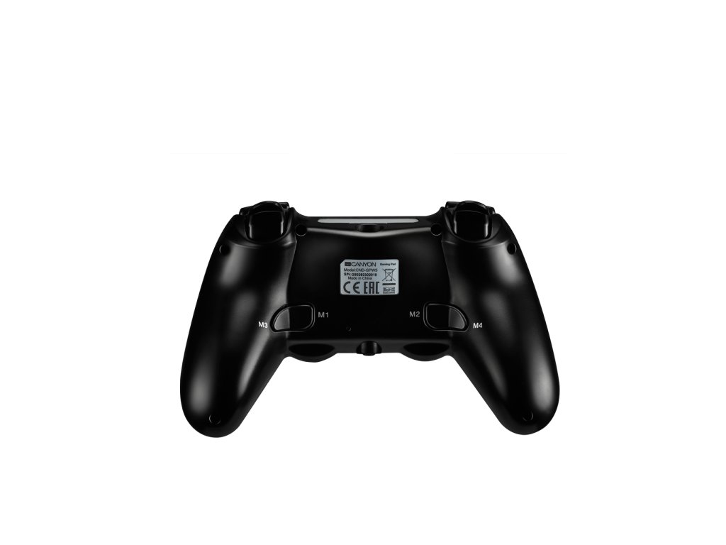 CANYON Bezdrátový gamepad s touchpadem pro PS4, 20 tlačítek, dosah bezdrátového připojení 10m, zabudovaný touchpad, vibrační odezva, turbo mód, makro funkce, chytré LED podscícení, kompatibilita s Playstation 4