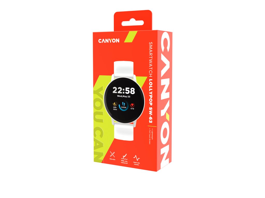 CANYON chytré hodinky Lollypop SW-63 WHITE, 1,3" IPS displej, 8 multi-sport, IP68, Android/iOS