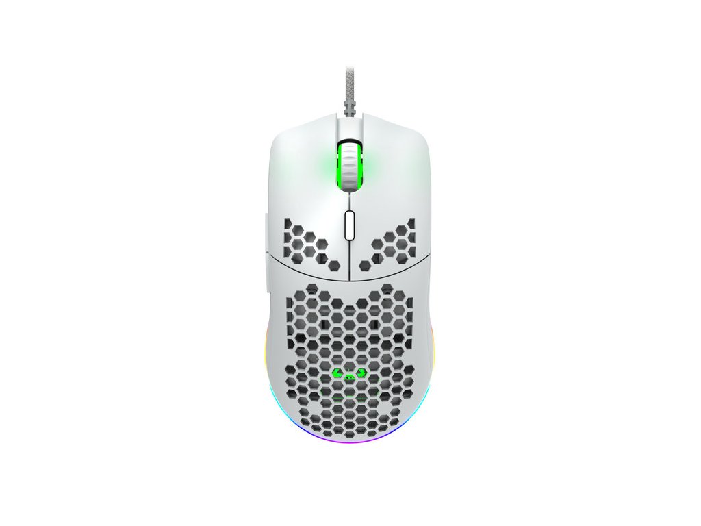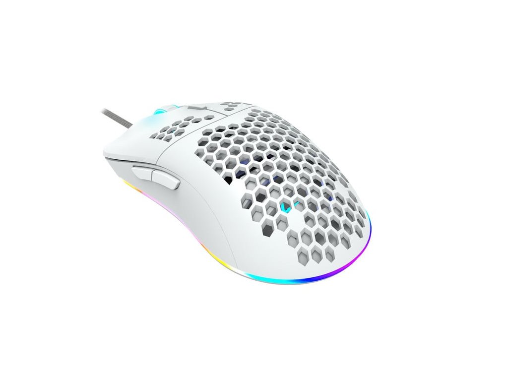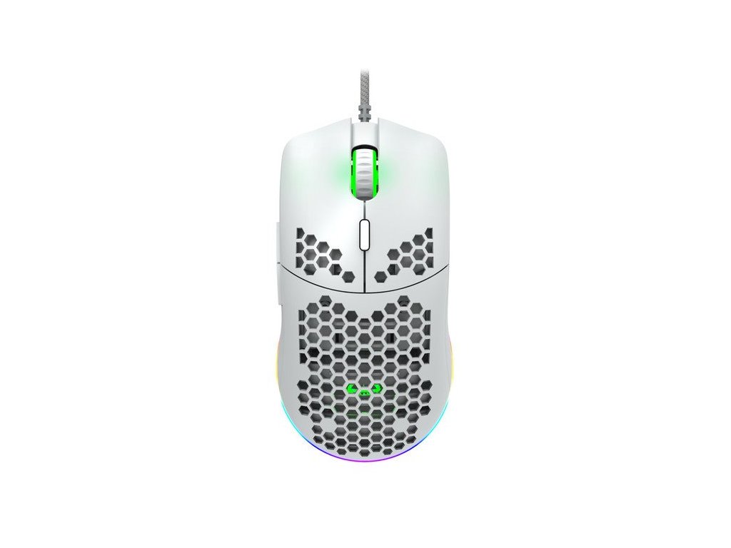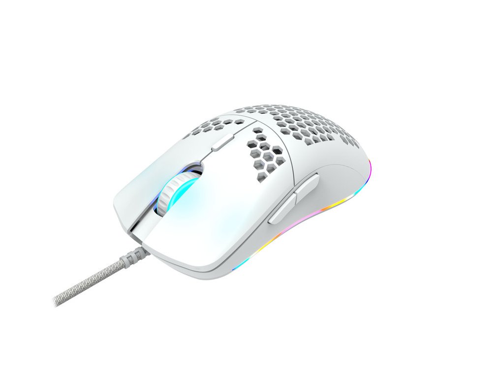 Herní myš Puncher: snímač Pixart PAW3519, nastavitelná DPI 800/1600/2400/4200, 7 programovatelných tlačítek, 6 režimů podsvícení, RGB podsvícení, USB tkaný kabel 1,65 m s feritovým kroužkem, přiřazení maker, vzorkovací frekvence: 125/250/500/1000Hz.