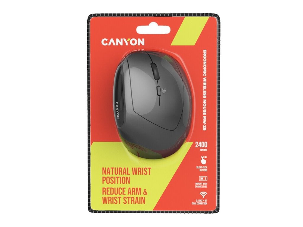 Objevte pohodlnější způsob práce i zábavy s vertikální bezdrátovou myší Canyon MW-25. Její ergonomický design podporuje přirozenou polohu ruky, čímž výrazně snižuje namáhání zápěstí a předloktí. Ideální volba pro každého, kdo tráví u počítače dlouhé hodiny – ať už v kanceláři, doma nebo na cestách.