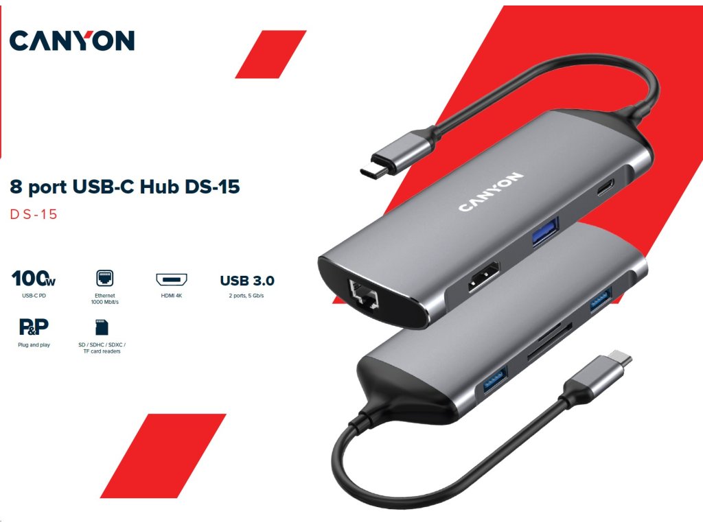 Obchodní název Hub Canyon DS-15 8in1 4k USB-C Dark Grey (CNS-TDS15)