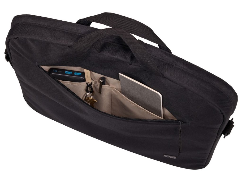 Brašna na notebook Cases Logic Invigo je vyrobena z recyklovaných materiálů, má polstrovaný úložný prostor pro tablet a notebook a promyšlené funkce pro usnadnění každodenní práce.