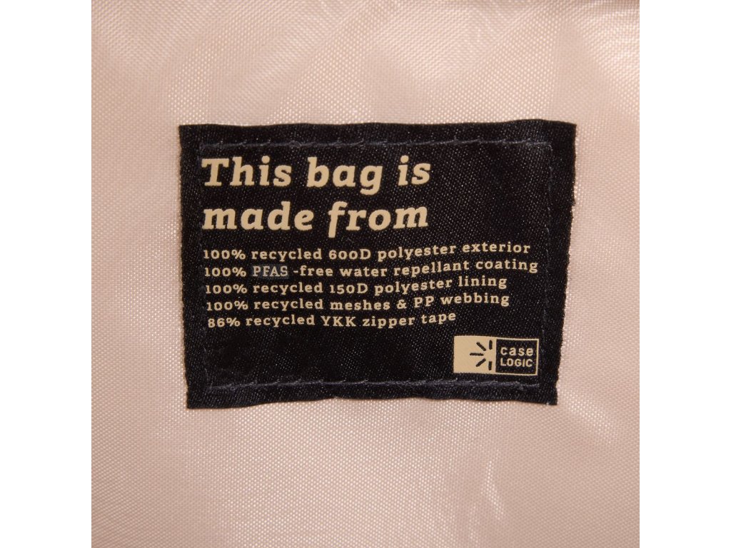 Tato brašna je vyrobena ze 100% recyklovaného polyesteru 600D, polyesterové vnitřní výstelky 150D, síťoviny, PP pásků a z 86% recyklované tkaniny zipu YKK. Vodoodpudivá povrchová úprava rovněž neobsahuje PFC, chemické látky, které jsou škodlivé pro životní prostředí.