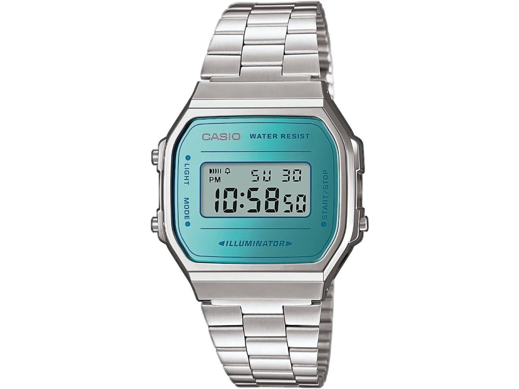Casio A168WEM-2EF jsou prezicní unisex hodinky, které nedáte z ruky. Tvoří je velikosti 38,6 mm. Efektivní Quartz technologie bude vždy zárukou velmi dobré výdrže a přesného měření. Materiálem zvoleným k výrobě řemínku je ocel, díky tomu je náramek pravou ozdobou, přičemž je samozřejmostí zachování maximálního pohodlí při nošení. Značkové hodinky CASIO mají běžnou odolnost proti vzdušné vlhkosti, nezvládnou ale přímý kontakt s vodou. Celkový stupeň krytí mají Water resistant.