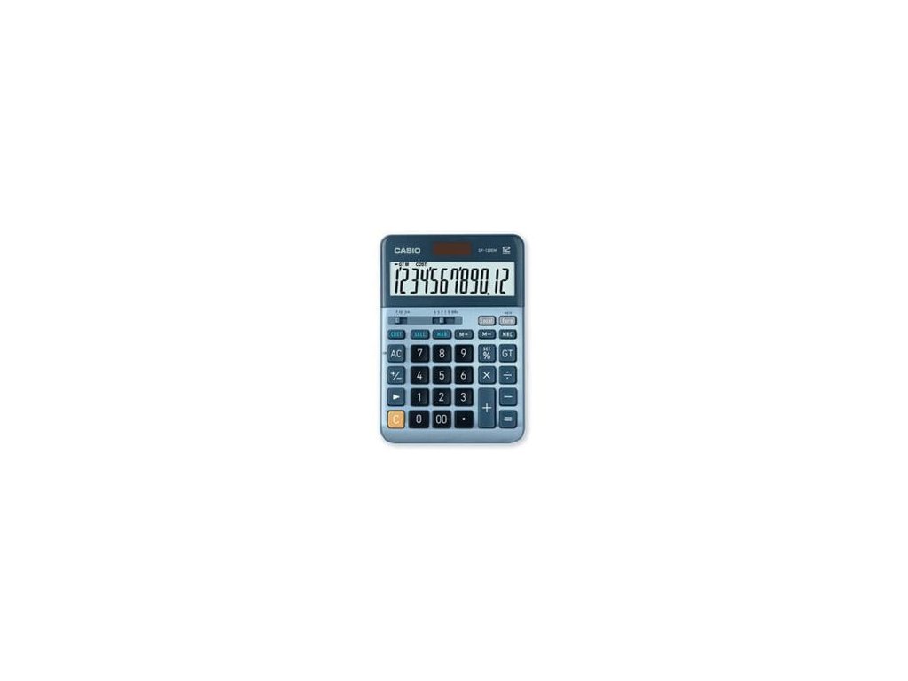 Klasická kalkulačka Casio DF-120 EM v modrém provedení umožní základní matematické funkce včetně převodu měn a výpočtu marže i procent.