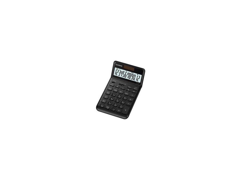 Stolní kalkulačka Casio JW 200 SC BK v černém provedení umožňuje standardní výpočty, profesionální výpočet procent, výpočet zisku pomocí tlačítka %, výpočet DPH, výpočet odmocniny a další funkce. Ve výbavě má 12místný velký naklápěcí LCD displej, 4tlačítkovou paměť, vyrovnávací paměť, tlačítko dvojité nuly a tlačítko změny znaménka. Duální napájení zajišťuje jedna baterie nebo solární panel.