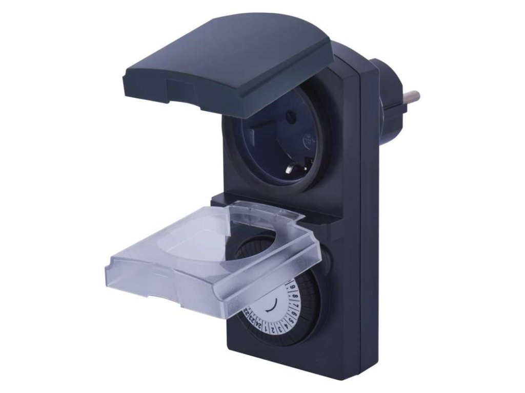 Slouží pro časové spínání domácích spotřebičů (0–3680 W). Pokud potřebujeme zapnout a vypnout spotřebič v určitém časovém rozmezí (osvětlení akvárií, venkovní osvětlení, zavlažování zahrad atd.). Spínaná fáze. Možnost venkovního použití.