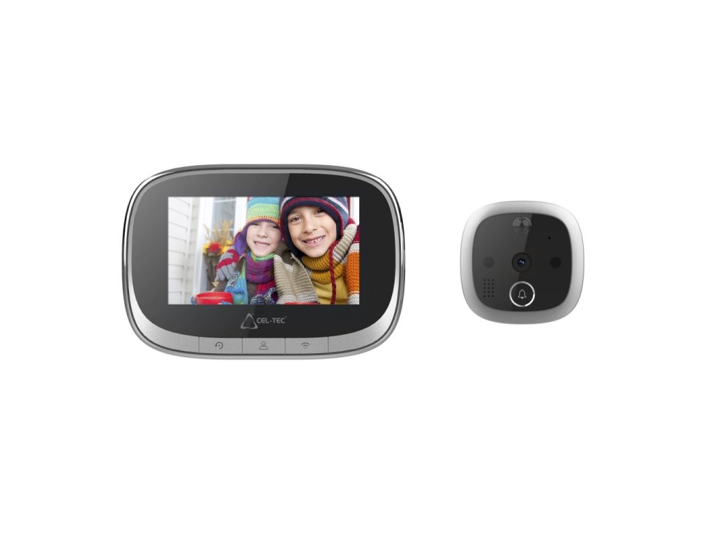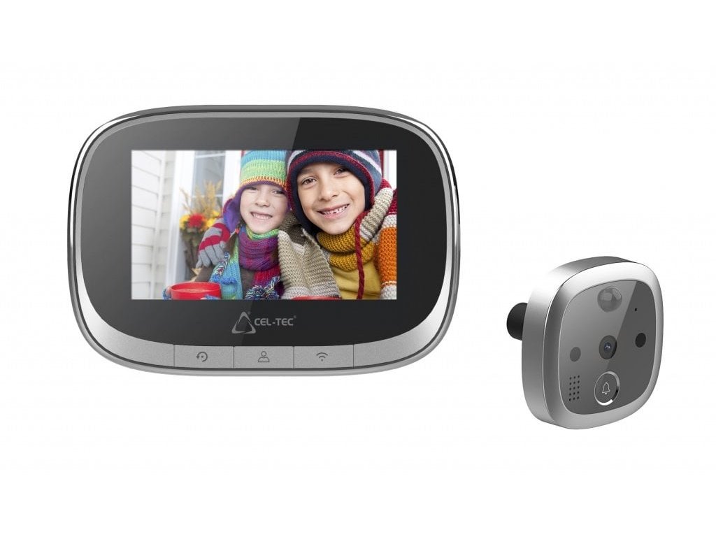 Moderní digitální dvěřní kukátko s úhlem záběru 120°, video/foto záznamem a barevným 4,3" LCD IPS displejem. Kukátko je vybaveno funkcí Wi-Fi pro snadný přístup z mobilního telefonu pomocí globální aplikace Tuya Smart, díky které budete navíc vždy okamžitě upozorněni v případě návštěvy u vašich dveří. Součástí dveřního kukátka je také zvonek Zařízení je napájeno nabíjecím akumulátorem, ale lze jej připojit také přímo do elektrické sítě pomocí adaptéru.