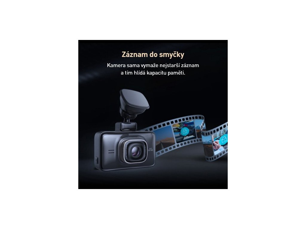 Palubní kamera disponuje zabudovaným 128 GB eMMC úložištěm, což je dostatek prostoru pro zhruba 7 hodin záznamu s oběma zapojenými kamerami v nejvyšším rozlišení (přední UHD, zadní FHD rozlišení) při kompresi H.265 (lze také nastavit H.264 - větší datová náročnost). Díky záznamu do smyčky se navíc není třeba obávat zaplnění paměti. Jakmile k zaplnění dojde, kamera začne automaticky přemazávat nejstarší záznamy těmi aktuálními.