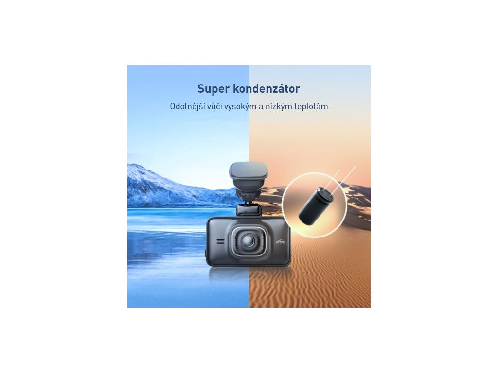 Současným trendem na poli kamer do auta je použití tzv. superkapacitoru namísto klasických li-ion baterií. Důvody jsou prosté - mnohem vyšší spolehlivost, životnost zařízení a bezpečnost. Již nehrozí žádné zdeformování kamery díky nafouknuté baterii, ztráta nastaveného data a času nebo omezená životnost. Elektrody superkapacitoru nepodléhají degradaci ani po mnoha tisících cyklech jako běžné baterie. Kameru je tedy možné používat pouze připojenou na napájení, což je vzhledem k výhodám superkapacitoru maličkost.
