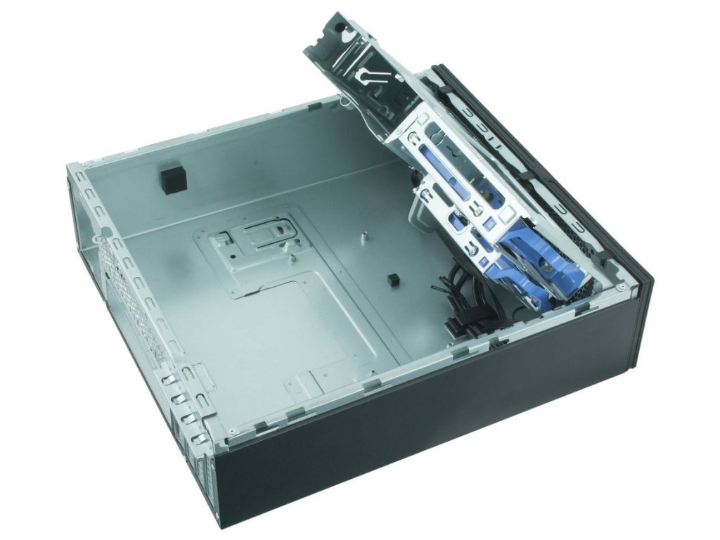 Skříň formátu Mini Tower nabízí jednu 2,5" pozici pro SSD disk a jednu 3,5" pozici pro pevný disk. Disponuje také dvěma externími pozicemi, jedna je formátu 5,25" a druhá formátu 3,5". Na předním panelu se nachází dva USB 3.0 porty, dva USB 2.0 porty, sluchátkový výstup a audio vstup pro mikrofon. Ve skříni je dostatek prostoru pro chladič CPU do výšky až 85 mm a grafickou kartu o délce až 195 mm. Skříň je dodávána s 300 W zdrojem GPF-300P.