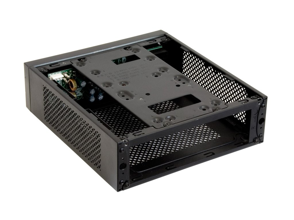skříň počítačová, case, Mini ITX, bez napájecího zdroje, neobsahuje DC-DC board, barva černá, interní 2x 2.5"