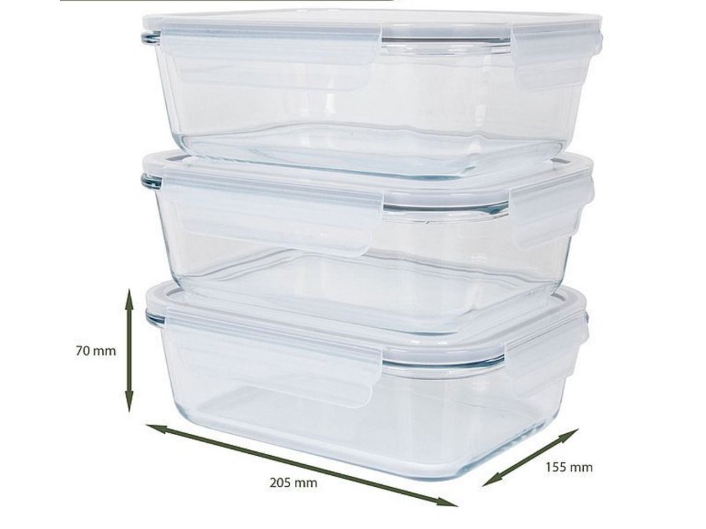 – 3 nádoby (1040 ml) + víko: cca. 20,5 x 15,5 x 7 cm