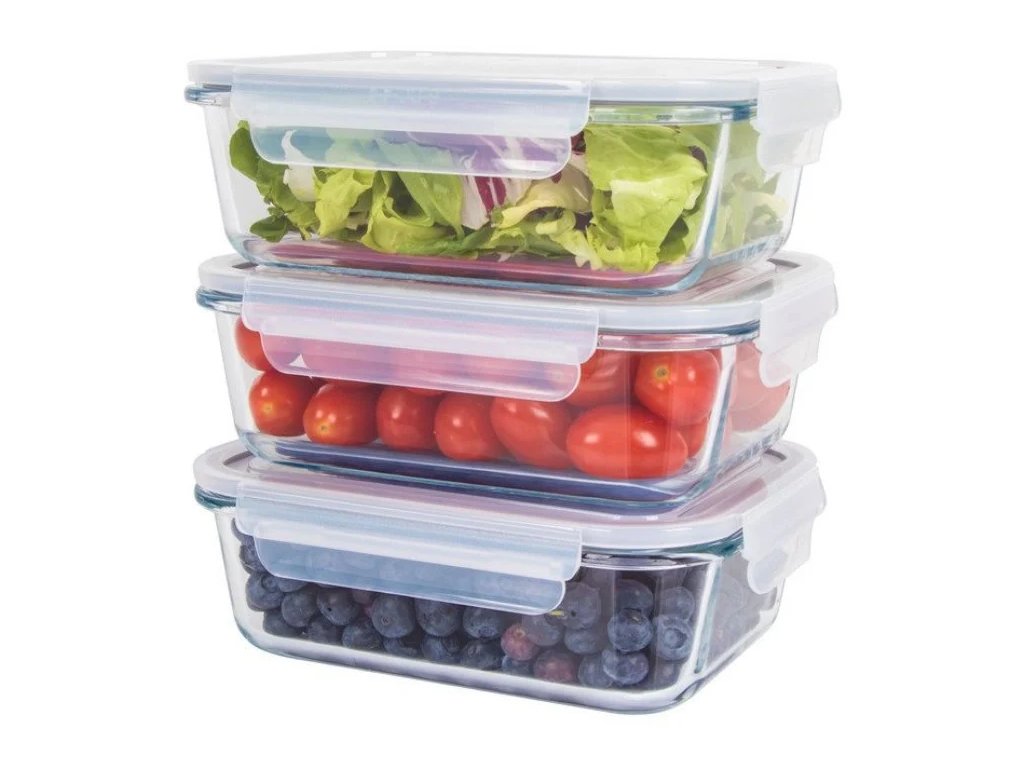 Sada 3 nádob na čerstvé potraviny v praktické velikosti pro všestranné použití. Vysoce kvalitní skleněné nádoby: odolné vůči skvrnám, pachům a korozi. Ideální pro mrazení, ohřev, skladování a přepravu potraviny, jako jsou jídla, omáčky, zelenina, ovoce, vafle a dětská výživa. Objem: 3 x 1040 ml. Praktický 4násobný Click & Safe uzávěr a vysoká kvalita silikonové těsnění ve víku. Snadná manipulace. Dlouhotrvající svěžest. Dlouhotrvající aroma. Parní ventil ve víku (znovu uzavíratelný). Rovnoměrný a rychlý ohřev jídla v mikrovlnné troubě s otevřeným ventilem. Skleněnou nádobu lze umístit do mikrovlnné trouby s víky (ochrana proti stříkající vodě). Teplotní odolnost od –40 do +400 °C