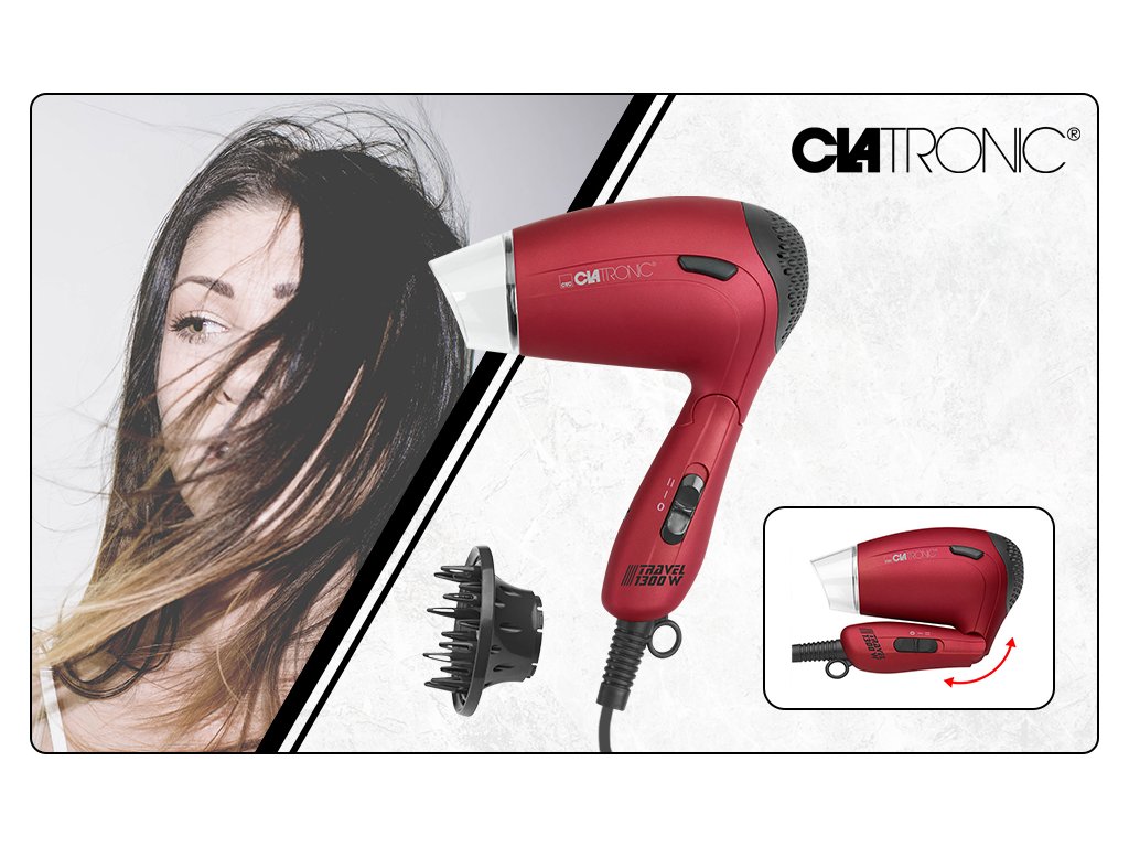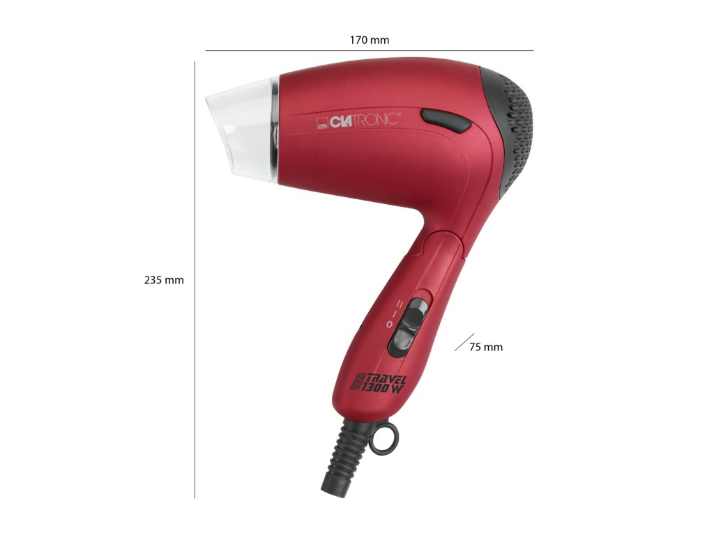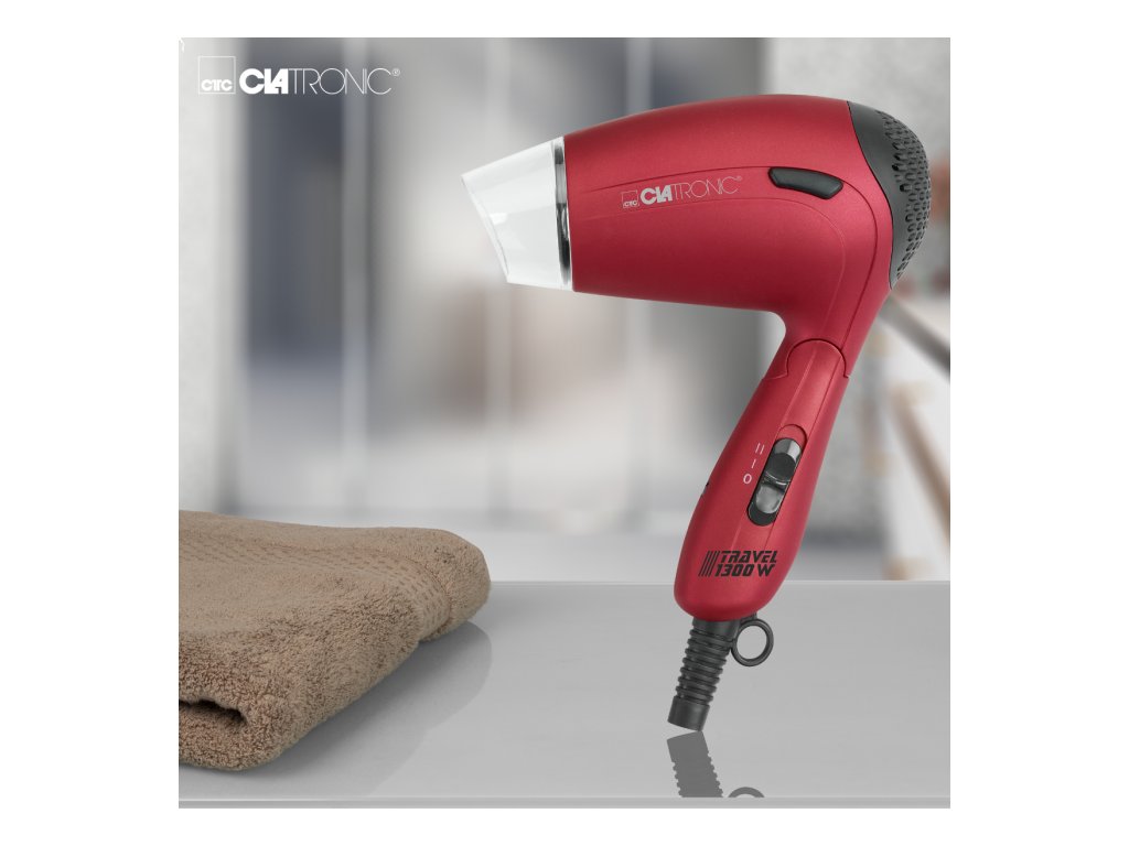 Cestovní fén na vlasy s nadstandardním výkonem 1 300 W. Lze vybrat ze 2 rychlostí/teplot provozu. Tryska je odnímatelná a otočná o 360 °.