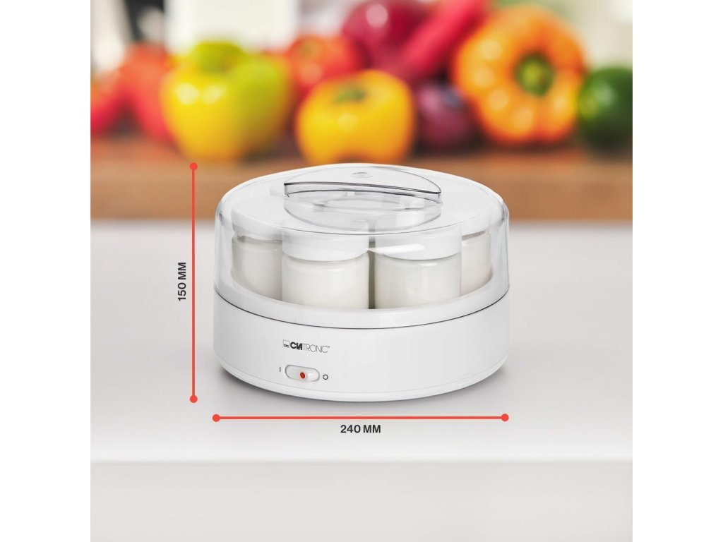 Jogurtovač jednoduše uvedete do provozu stisknutím praktického vypínače s kontrolkou. Díky průhlednému víku budete mít vždy maximální přehled o připravovaných jogurtech. Vzhledem ke kompaktním rozměrům najde spotřebič své místo v každé domácnosti.