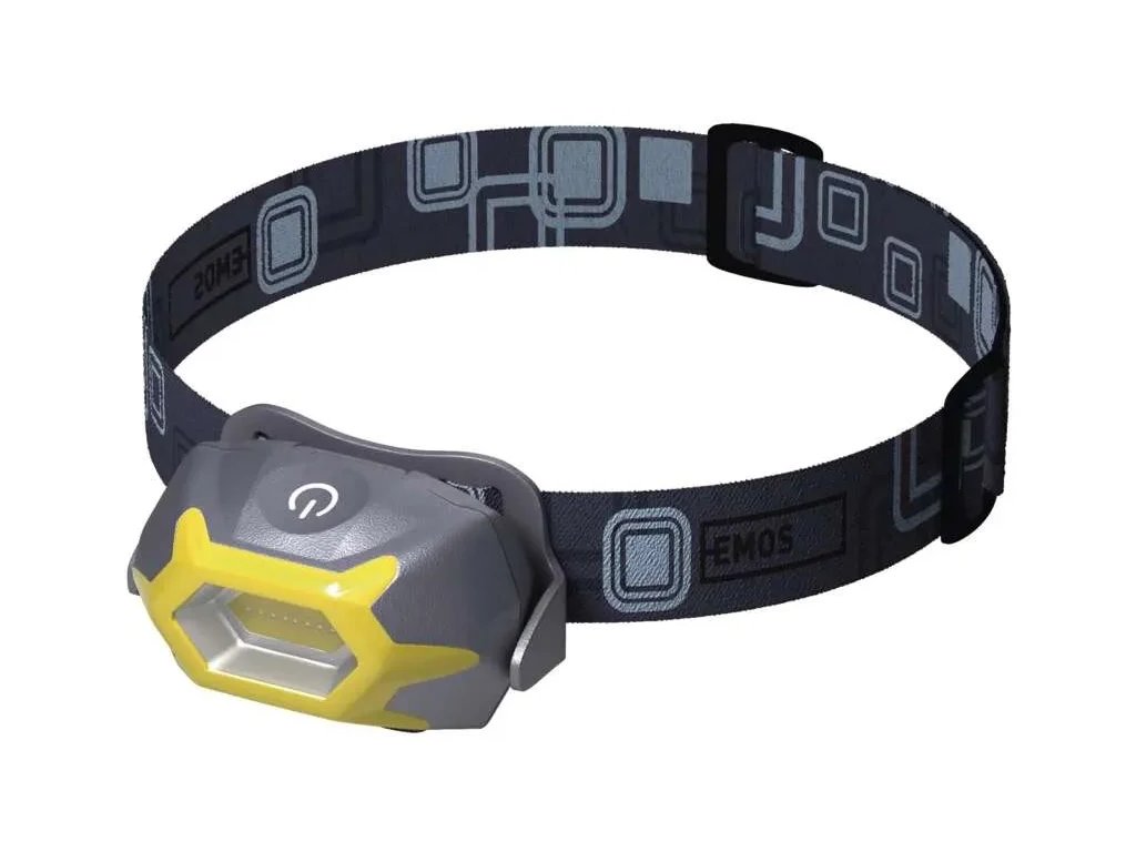 Praktická voděodolná a nárazuvzdorná LED čelovka je ideální pro práci, když potřebujete volné ruce. S maximálním světelným tokem 125 lm, dosvitem 20 m a dobou svícení 9–19 h. Napájena 3× AAA, váží 54/89 g, barva šedo-žlutá. Rozměr 69 × 43 × 46 mm.