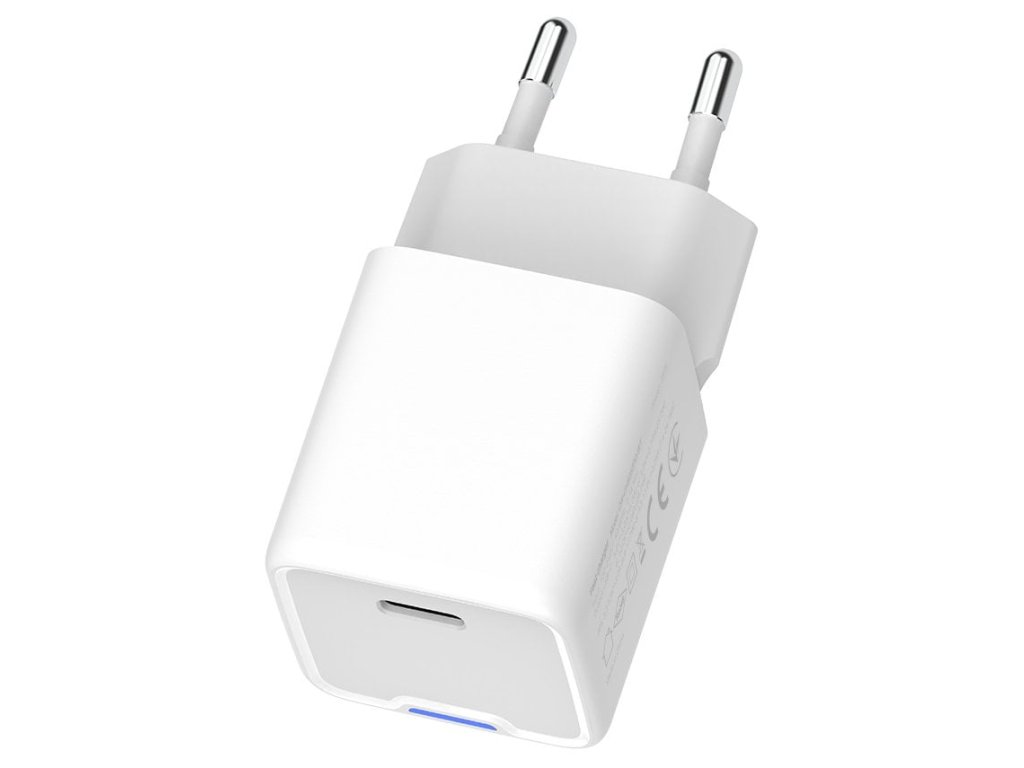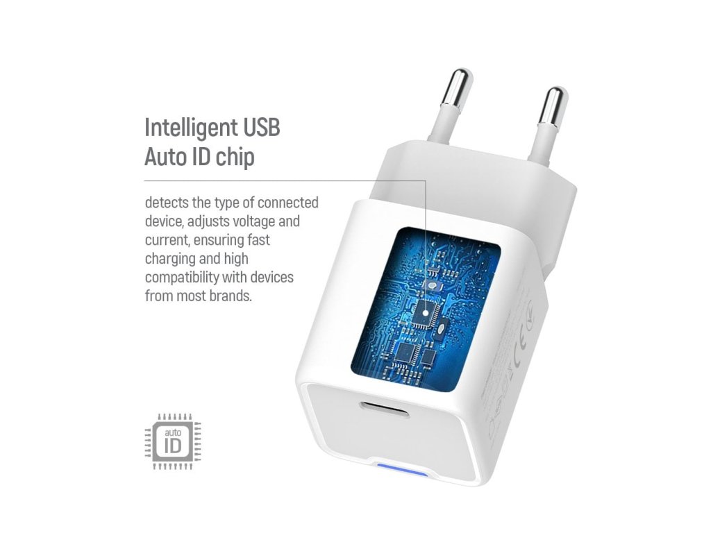 Napájecí adaptér, síťová nabíječka, 1× USB-C, výstup max. 3A, Power Delivery 3.0, 30W, vstup 100–240V, GaN technologie, bílý
