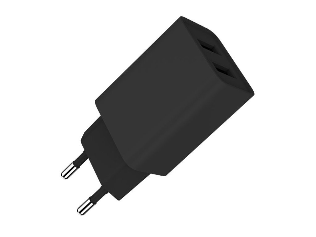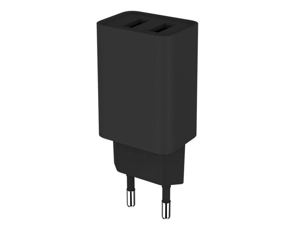 Napájecí adaptér, síťová nabíječka, 10W, 2× USB-A, výstup max. 2,1A, vstup 100–240V, černý