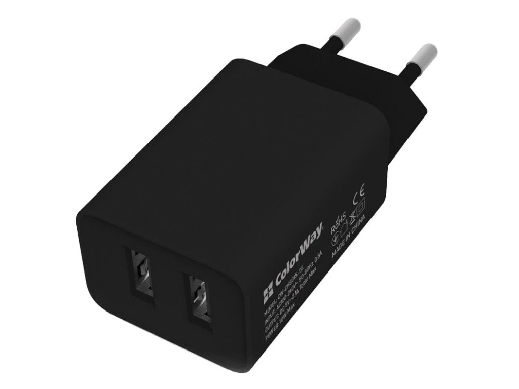 ColorWay 2x USB/ síťová nabíječka/ 10W/ 100V-240V/ Černá