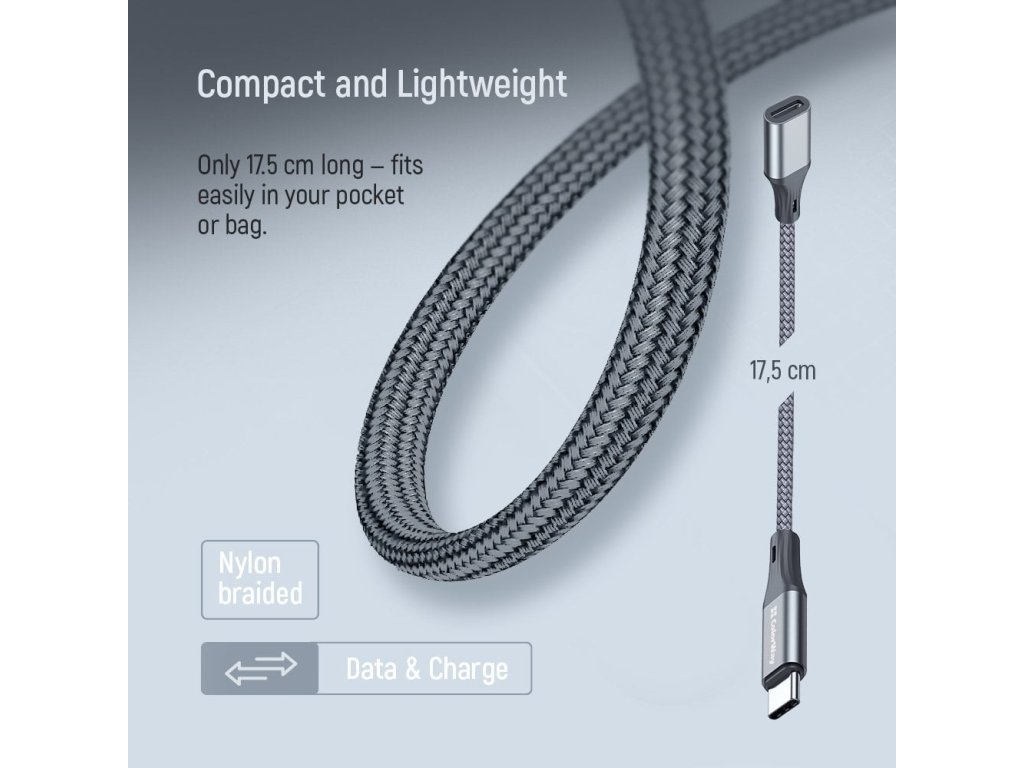 Adapter vyniká kvalitním zpracováním s pouzdrem z hliníkové slitiny a odolným nylonovým opletem kabelu. Kompaktní rozměry s délkou 17,5 cm zajišťují snadné přenášení a praktické používání.