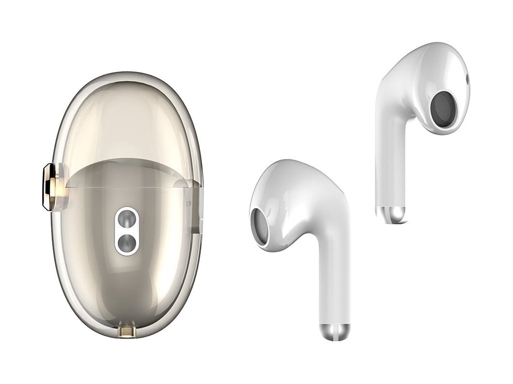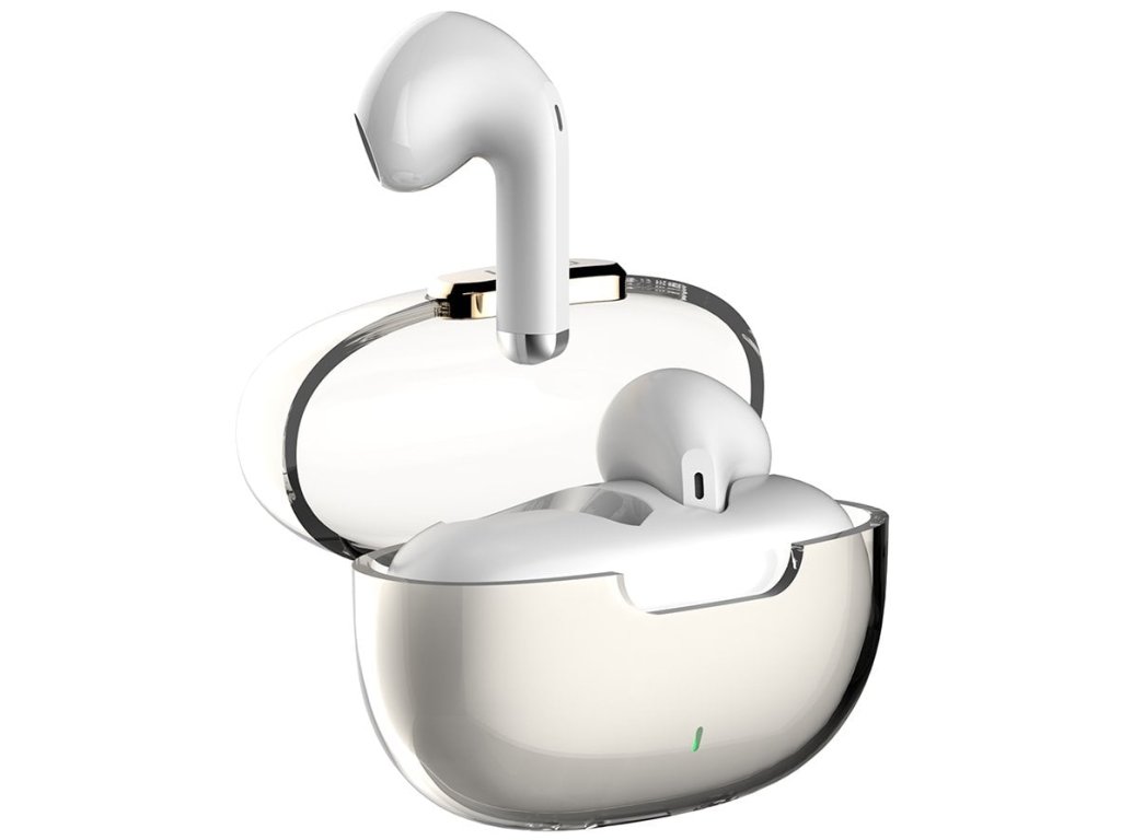 Headset, bezdrátový, do uší, Bluetooth 5.3, výdrž až 4 hodiny, mikrofon, dobíjecí pouzdro, bílý