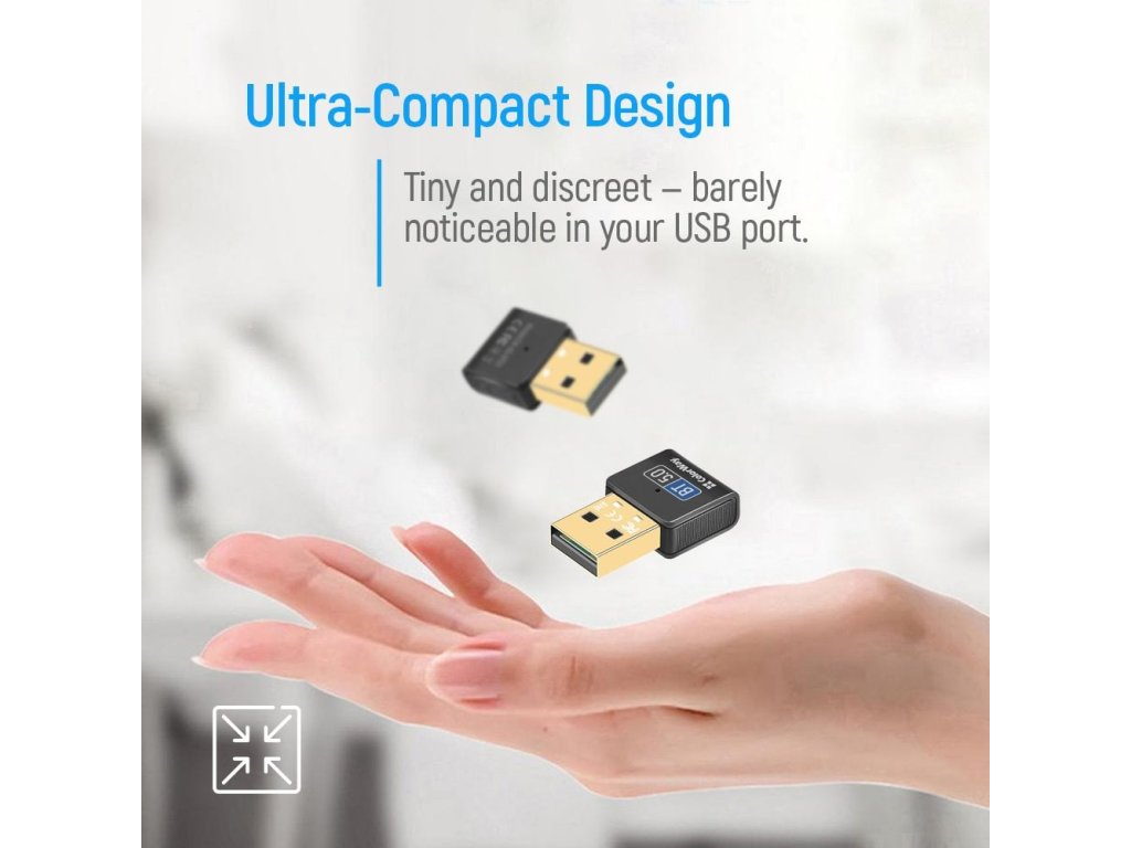 Díky tomuto miniaturnímu adaptéru snadno propojíte svůj počítač s bezdrátovými sluchátky, reproduktory, myšmi, klávesnicemi a dalšími Bluetooth zařízeními. Adaptér využívá nejnovější Bluetooth 5.0 technologii s chipsetem RTL8761B, která zajišťuje stabilní signál, vysokou rychlost přenosu dat a nízkou spotřebu energie.