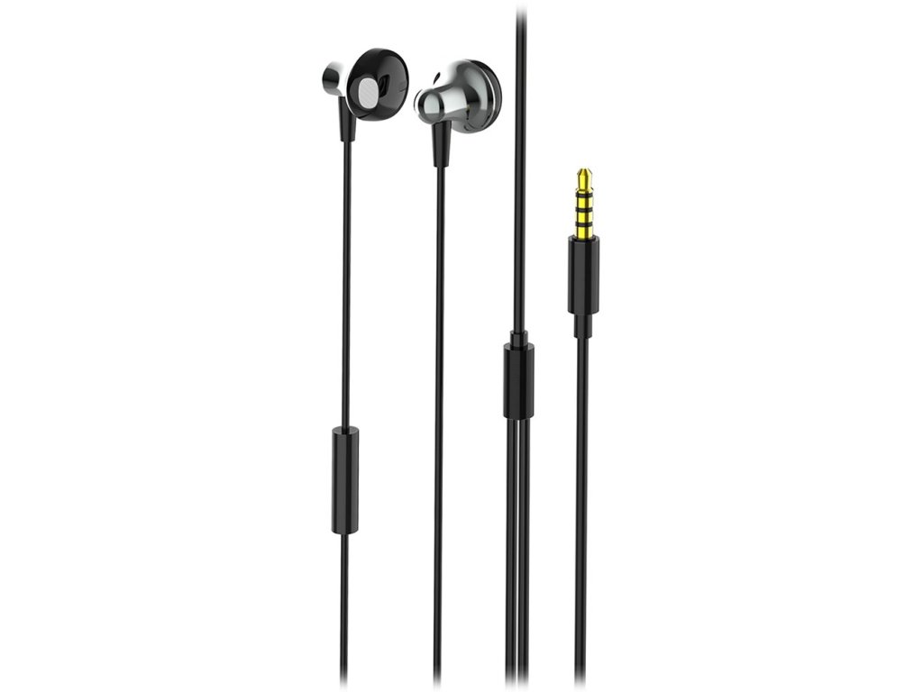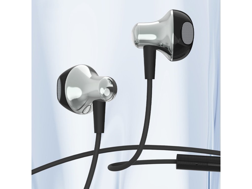 Drátová sluchátka s mikrofonem zaručí plynulé poslechové zážitky a pohodlnou hlasovou komunikaci. Disponují 13mm meniči s vysokým rozsahem poskytujícím čistý a bohatý zvuk nejvyšší kvality. Pomocí tenké membrány reprodukují i ty nejsložitější hudební skladby a zajišťují mnohovrstevnatý detailní a emotivní zvuk. Na samotném kabelu sluchátek se nachází ovládací panel se 3 tlačítky a také kvalitní mikrofon, který zajišťuje, že váš hlas bude během hovoru a vystavení nežádoucímu hluku přenášen s maximální čistotou. Sluchátka se připojují přes 3,5 mm jack.