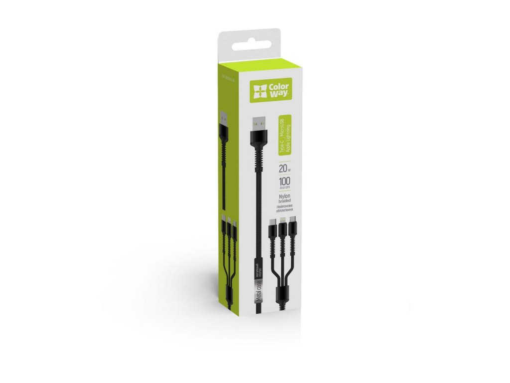ColorWay kabel 3v1 USB - Lightning, microUSB a USB-C 4.0A 1.2m