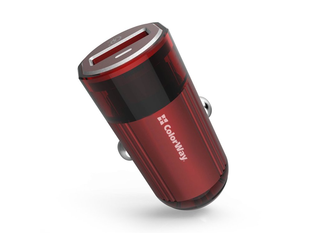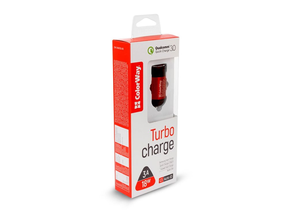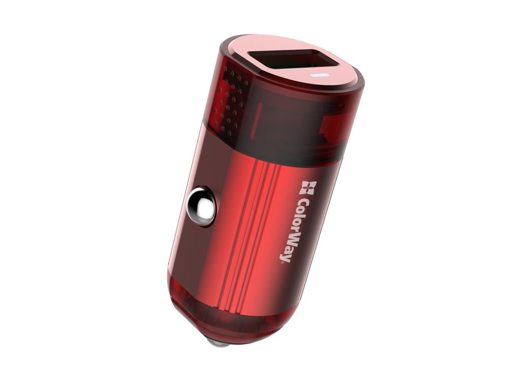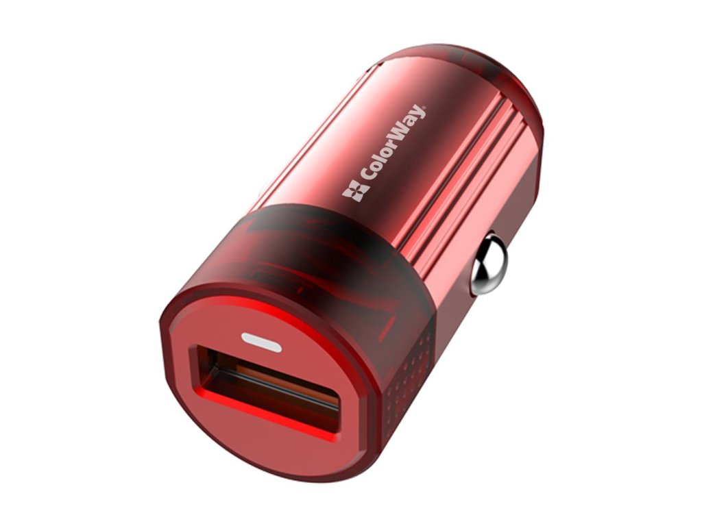 ColorWay nabíječka do auta 1x USB 18W QC3.0, červená