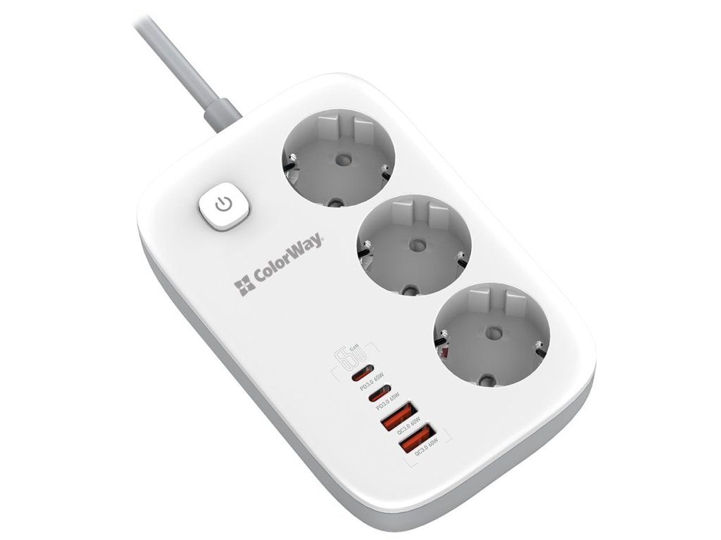ColorWay Prodlužovací napájecí přívod/ 3x Schuko/ 2x USB-A 60W/ 2x USB-C 65W/ kabel 2m