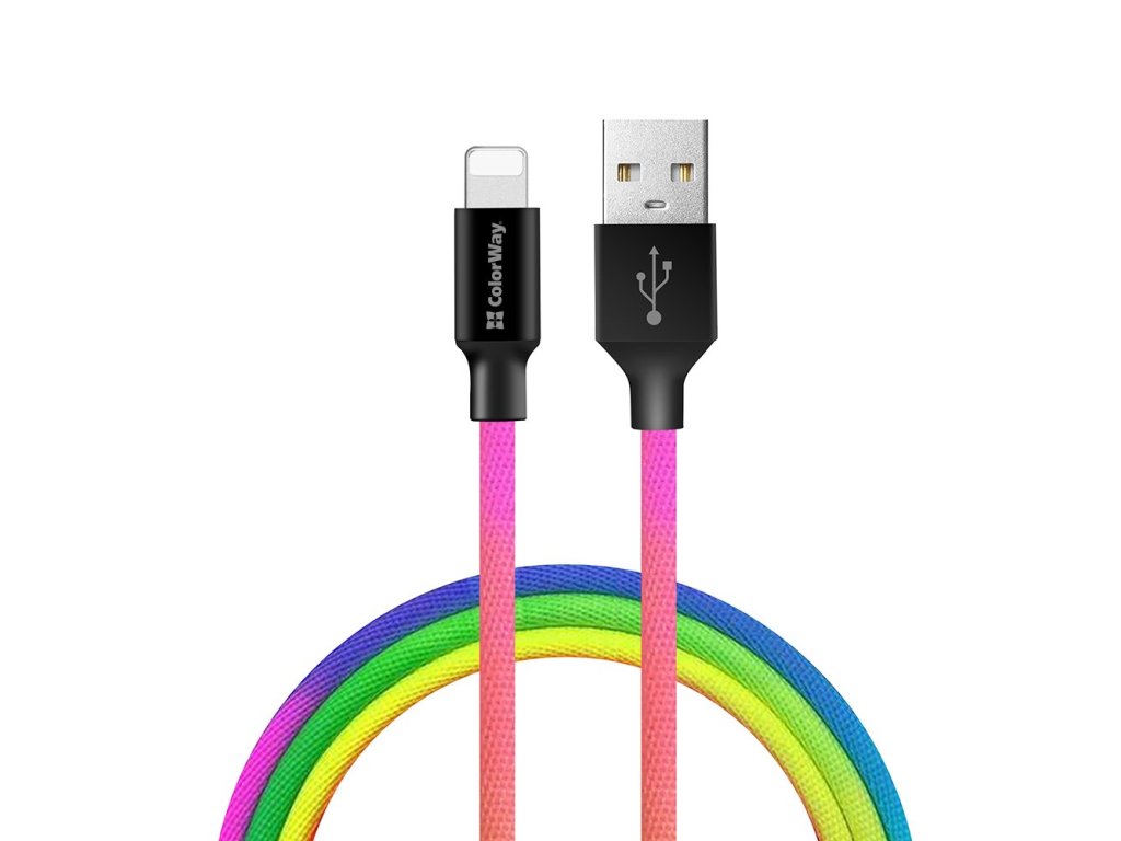 ColorWay USB 2.0 typ A na Lightning 1 m, Rainbow multicolor