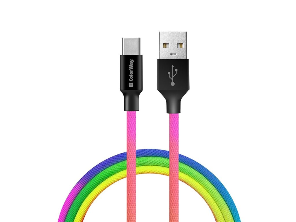 ColorWay USB 2.0 typ A na USB typ C, 1 m, Rainbow multicolor