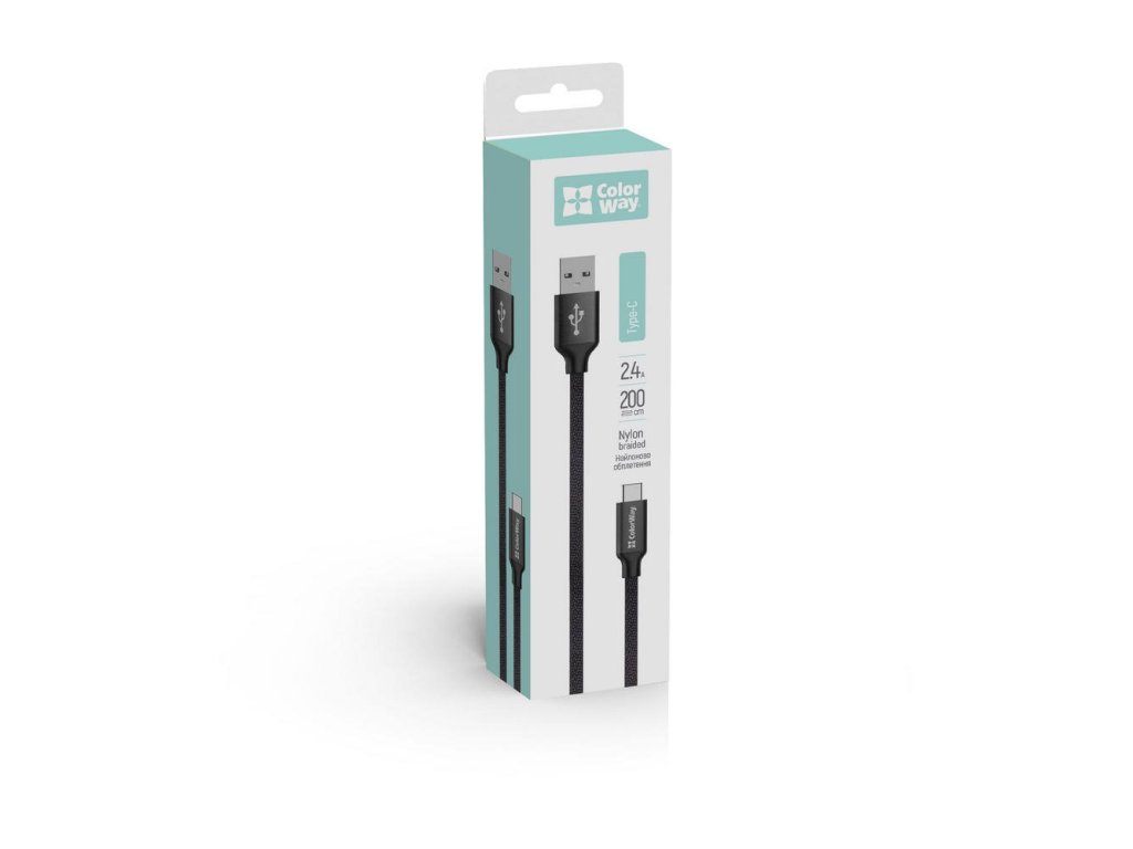 propojovací kabel, synchronizační a nabíjecí, USB 2.0 typ A na USB-C, 2m, 2.4A, nylon, opletený, černý