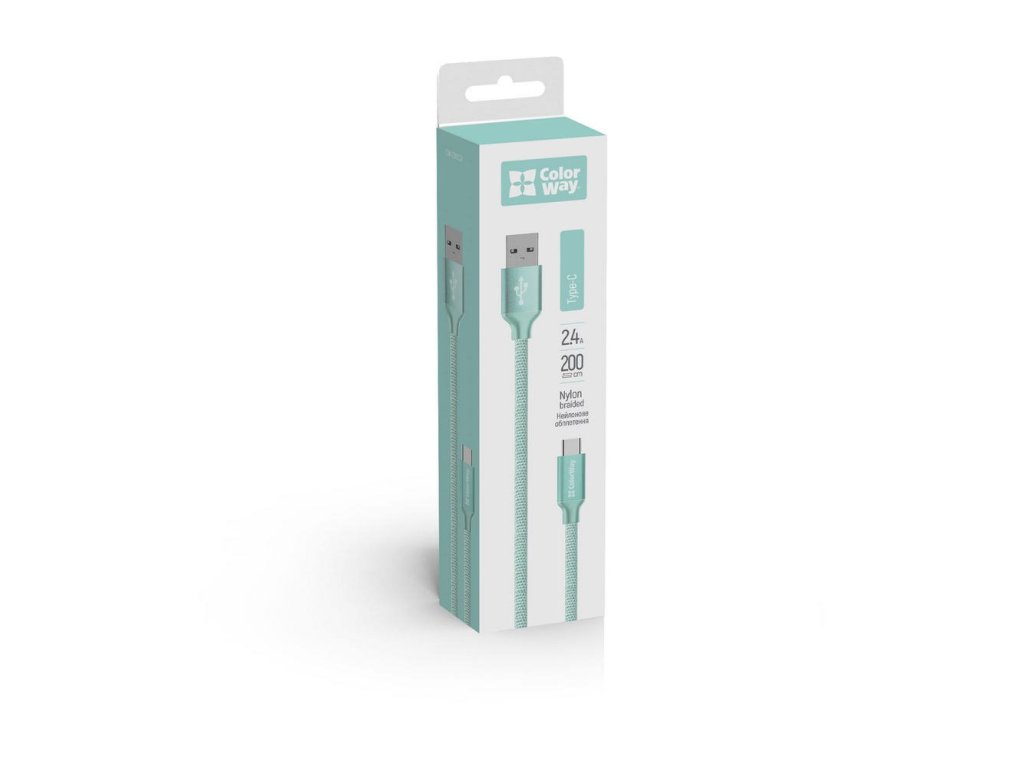 ColorWay USB-C kabel 2m 2.4A, zelená