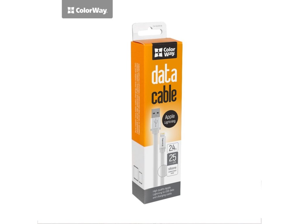 ColorWay USB - Lightning kabel 25cm, plochý, bílá