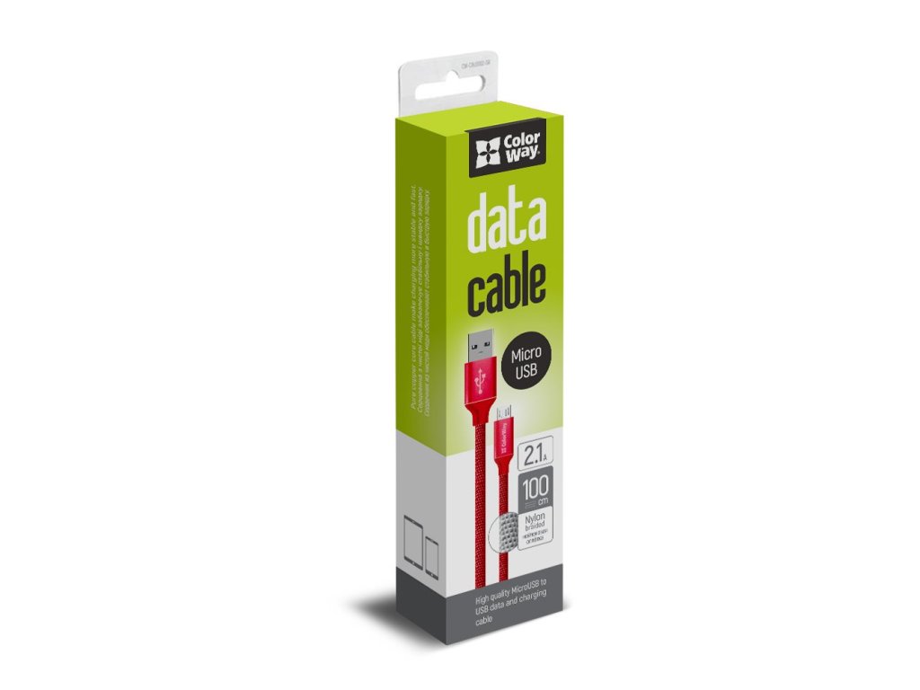 ColorWay USB - microUSB kabel 1m 2.1A, červená
