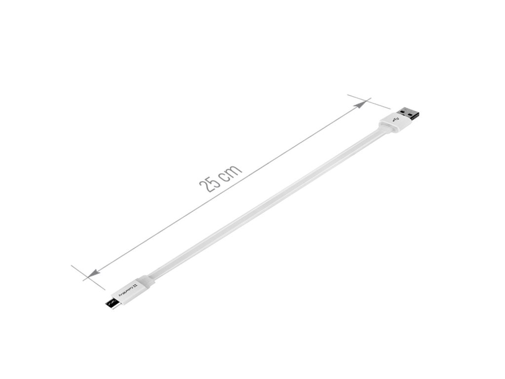 propojovací kabel, konektor USB typ A - micro B, plochý, 25cm, 2A, bílý