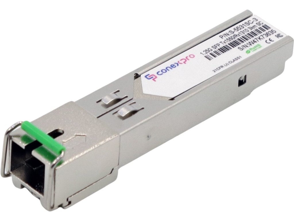 Gigabitový WDM/Bidi Singlemode SFP modul od výrobce Conexpro s vlnovou délkou (Tx/Rx) 1550/1310 nm, rychlostí 1 Gbps, vybavený jedním SC konektorem s UPC broušením a je určený pro spojení na vzdálenost 3 km. Tento modul poskytuje univerzální kompatibilitu, což znamená, že je schopen spolupracovat s téměř všemi dostupnými aktivními prvky. Samozřejmostí je podpora diagnostiky optického spojení pomocí funkce DDM (Digital Diagnostic Monitoring).