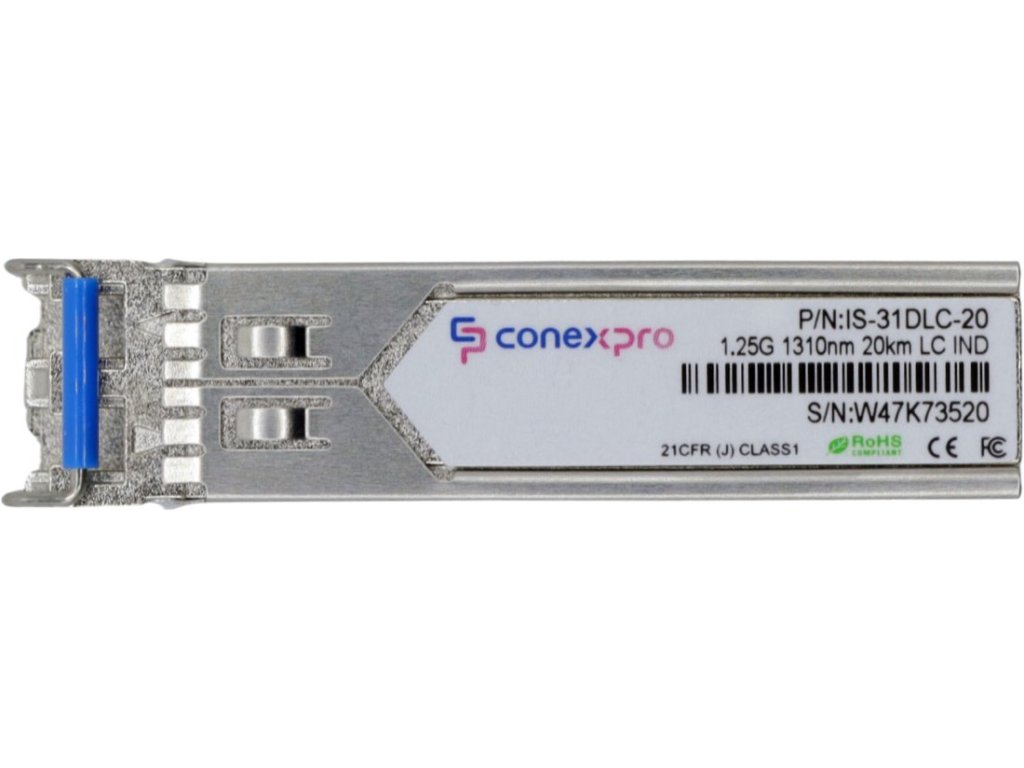 Gigabitový Singlemode SFP modul od výrobce Conexpro s vlnovou délkou (Tx i Rx) 1310 nm, rychlostí 1 Gbps, vybavený dvěma LC konektory s UPC broušením a je určený pro spojení na vzdálenost až 20 km. Tento modul poskytuje univerzální kompatibilitu, což znamená, že je schopen spolupracovat s téměř všemi dostupnými aktivními prvky. Samozřejmostí je podpora diagnostiky optického spojení pomocí funkce DDM (Digital Diagnostic Monitoring). SFP modul ve své průmyslové verzi se od standardního liší kvalitnějšími komponentami a rozšířeným provozním teplotním rozsahem od -45°C do +85°C.