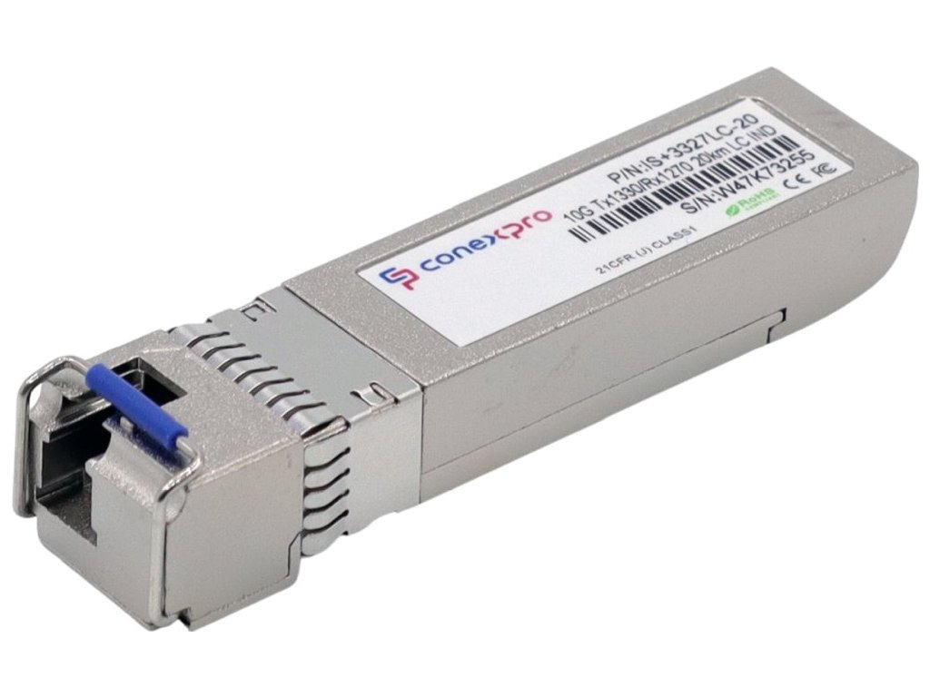10-Gigabitový WDM/Bidi Singlemode SFP+ modul od výrobce Conexpro s vlnovou délkou (Tx/Rx) 1330/1270 nm, rychlostí 10 Gbps, vybavený jedním LC konektorem s UPC broušením a je určený pro spojení na vzdálenost až 20 km. Tento modul poskytuje univerzální kompatibilitu, což znamená, že je schopen spolupracovat s téměř všemi dostupnými aktivními prvky. Samozřejmostí je podpora diagnostiky optického spojení pomocí funkce DDM (Digital Diagnostic Monitoring). Modul ve své průmyslové verzi se od standardního liší kvalitnějšími komponentami a rozšířeným provozním teplotním rozsahem od -45°C do +85°C.