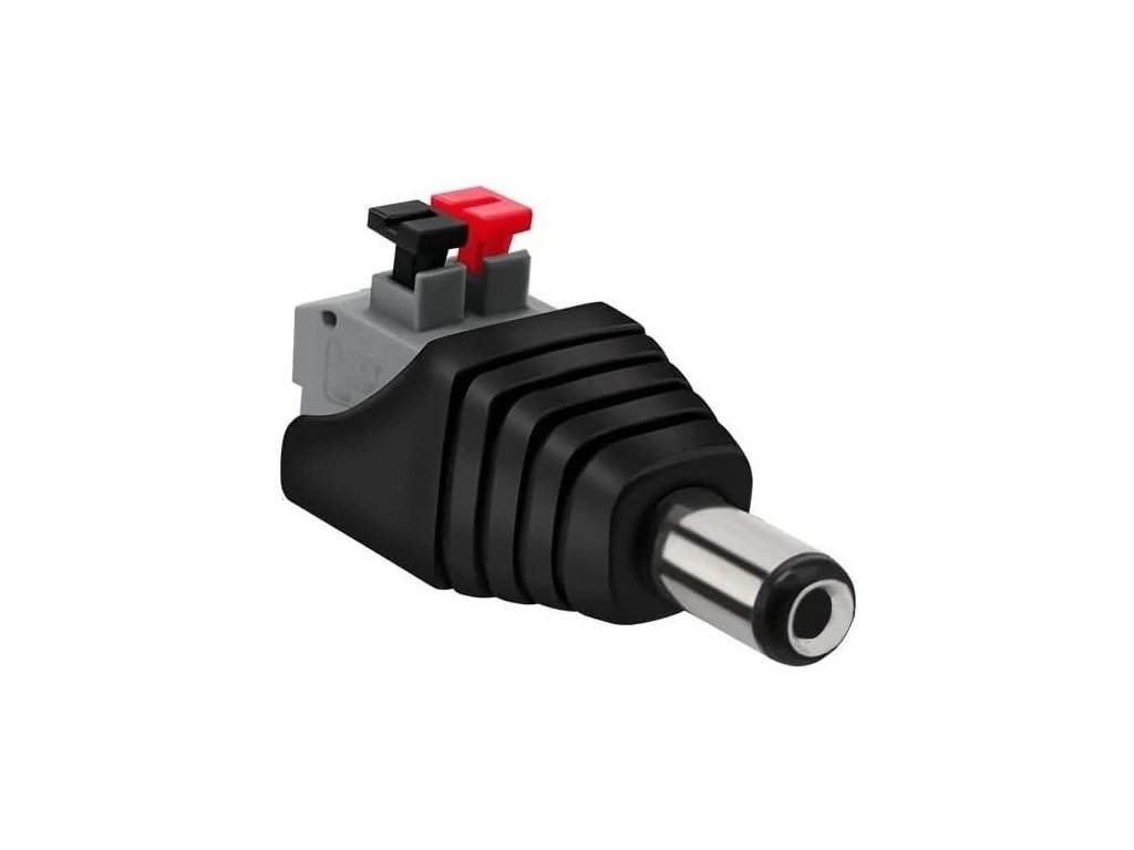 DC napájecí konektor typu male s rozměry 2.1 x 5.5 mm slouží k napájení zařízení, jako jsou LED pásky, adaptéry, měniče napětí, apod., která jsou opatřena shodnou DC zásuvkou. Díky svorkovnici odpadá nutnost pájení a zařízení lze jednoduše připojit. Vodič se ke konektoru připojuje pomocí pružinové svorkovnice a není třeba žádný šroubovák.